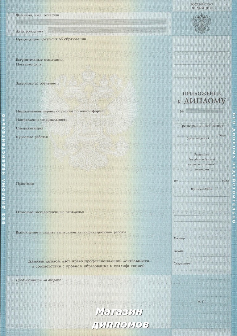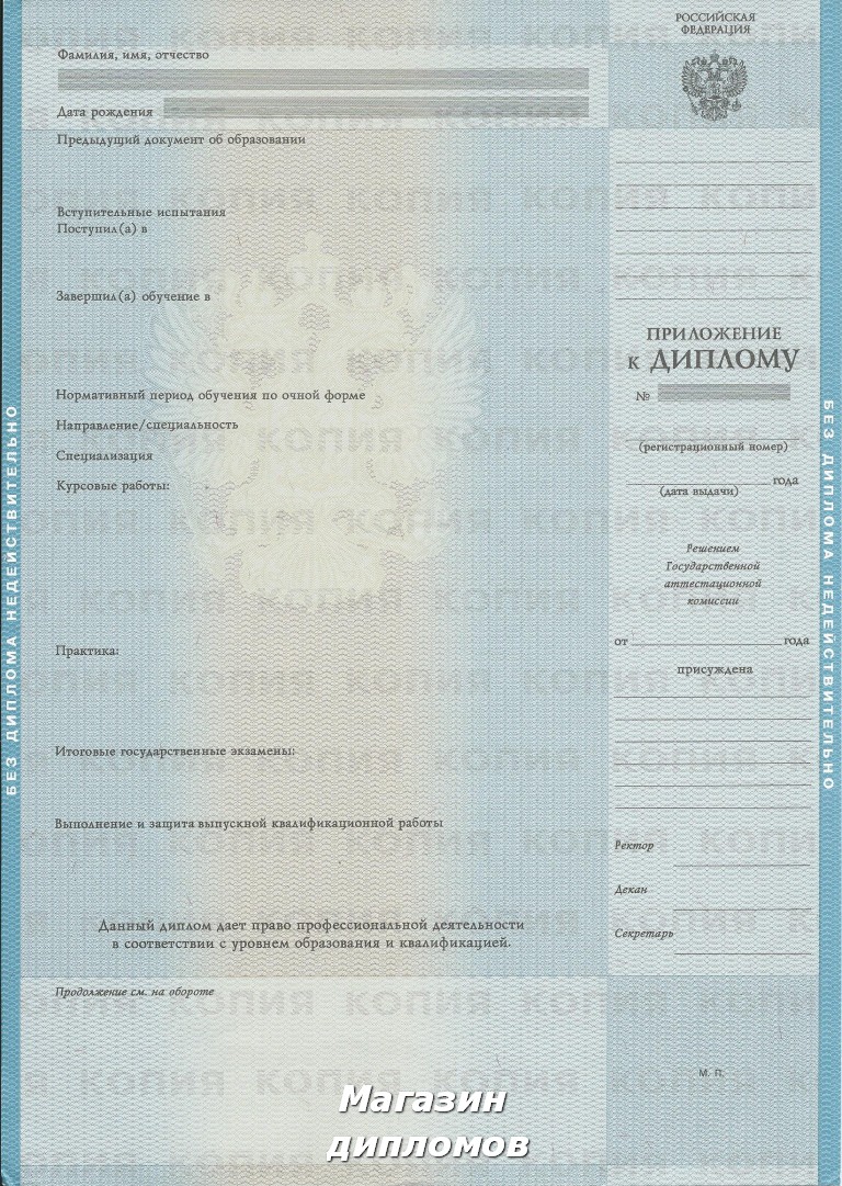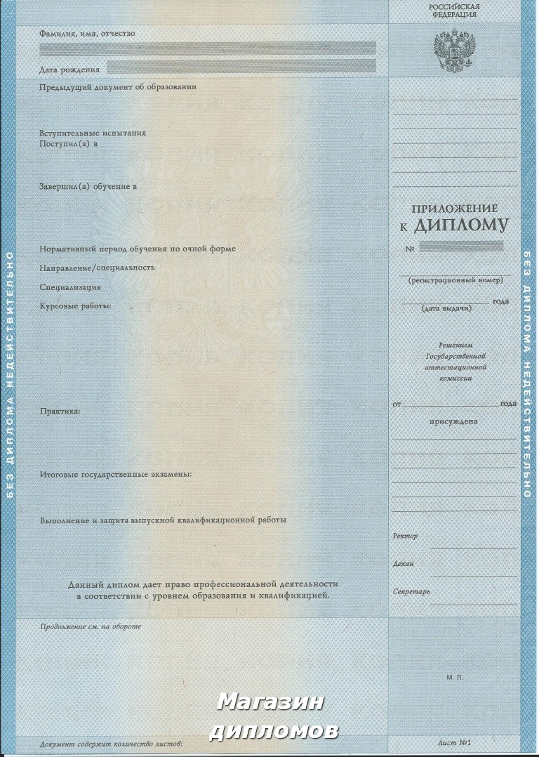 Диплом ВУЗа Российской Федерации, выдавался с 1997 года по 2003 год.