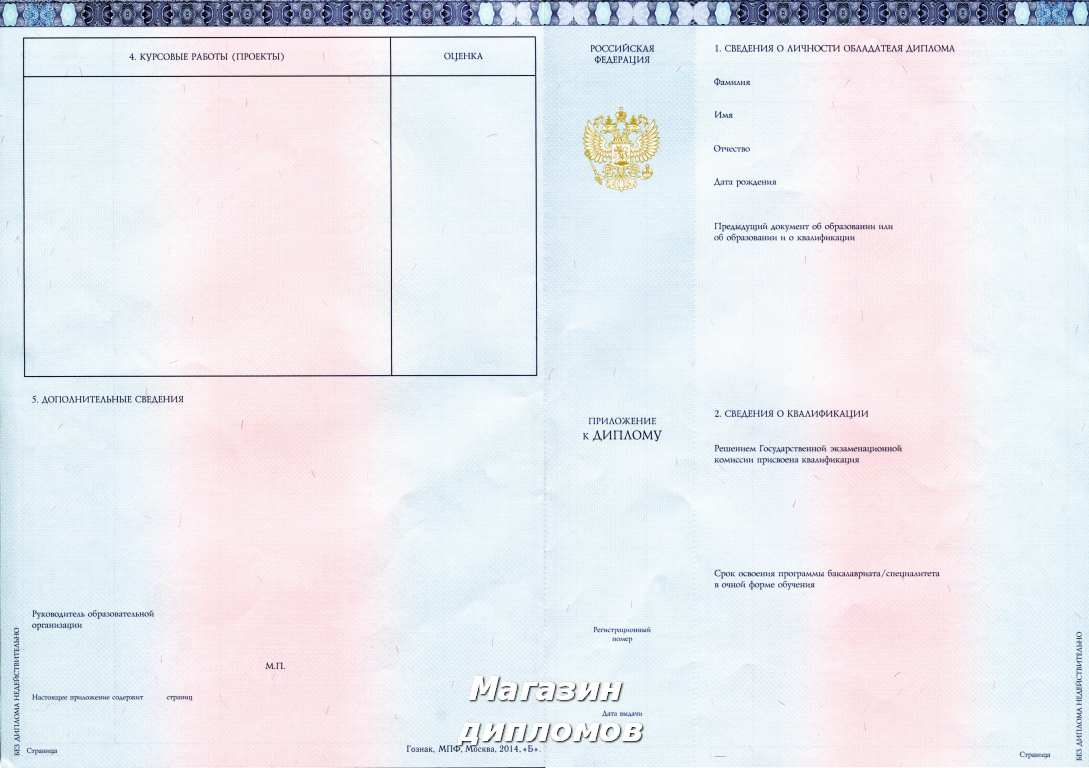 Диплом ВУЗа Российской Федерации (Гознак, МПФ, Москва 2014 год.), выдавался с 2014 года.